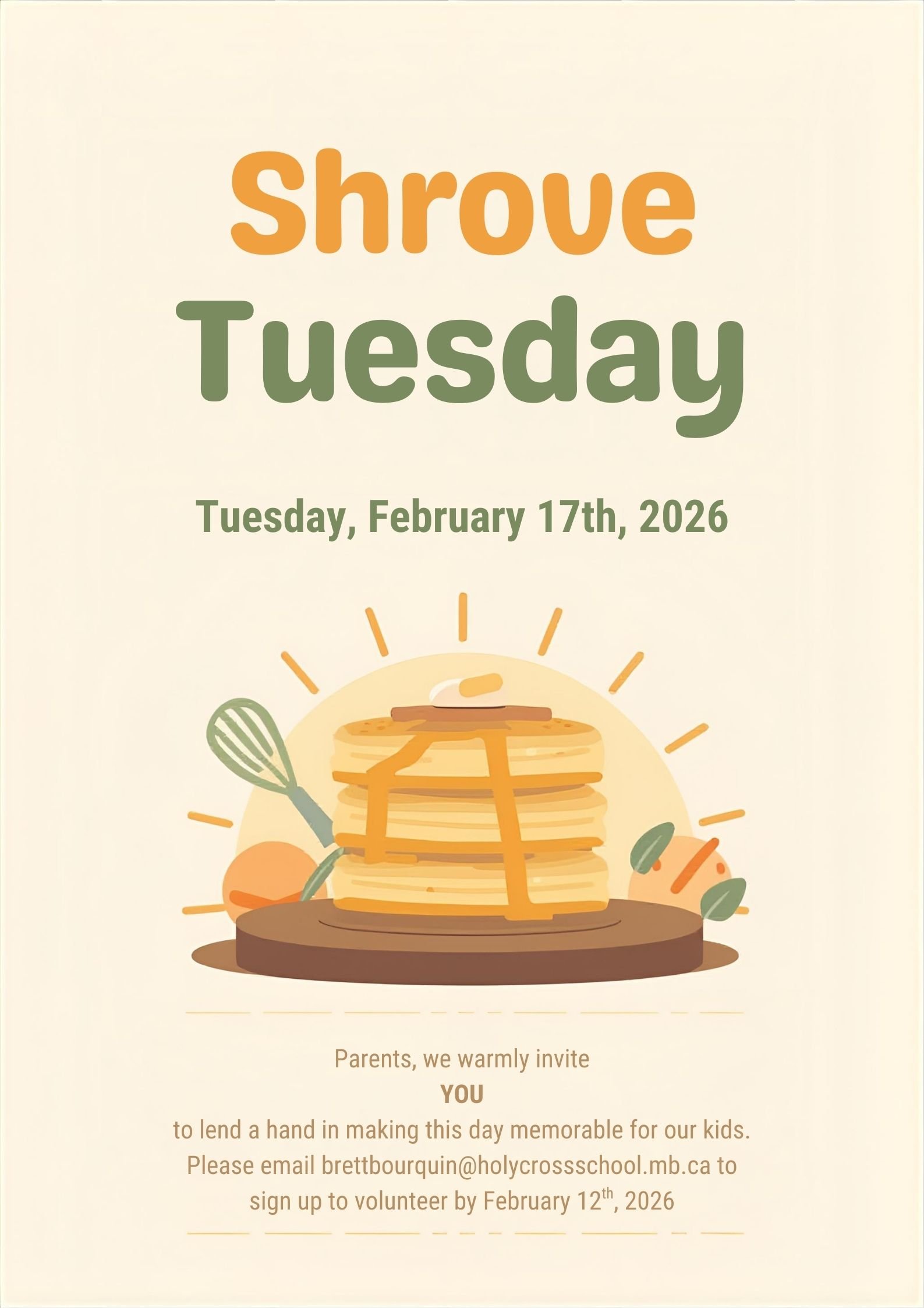 February has finally arrived! Please see the weekly update for various events happening this week at HCS. A reminder that the pancake breakfast is approaching and we need some parent volunteers to help us whip up some delicious treats!
